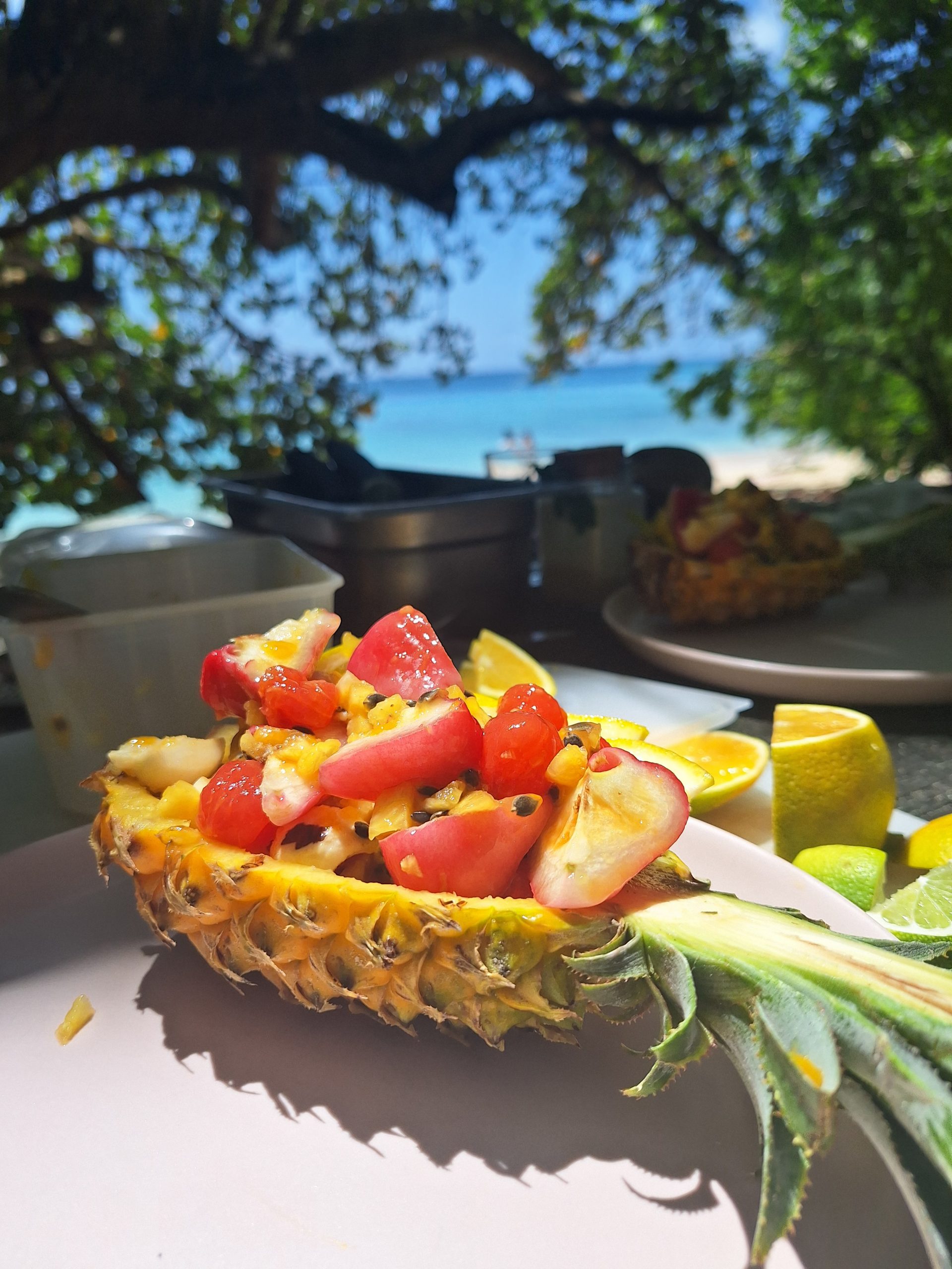 Quelques bouchées puis le plat servi en calebasse et une touche sucrée pour terminer.